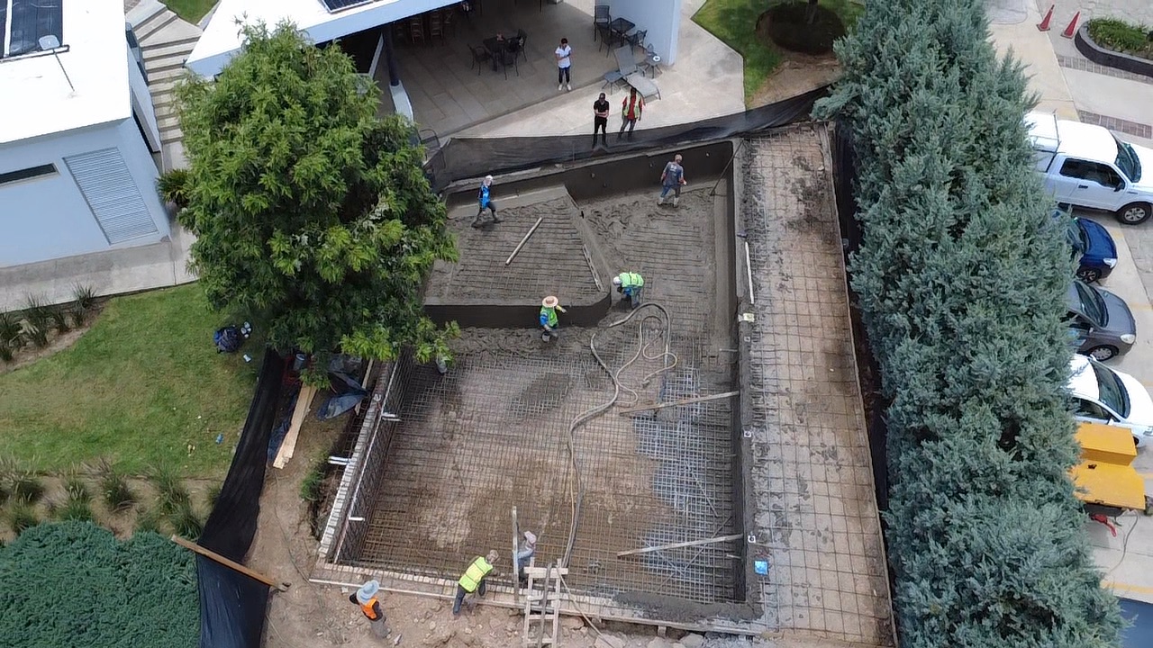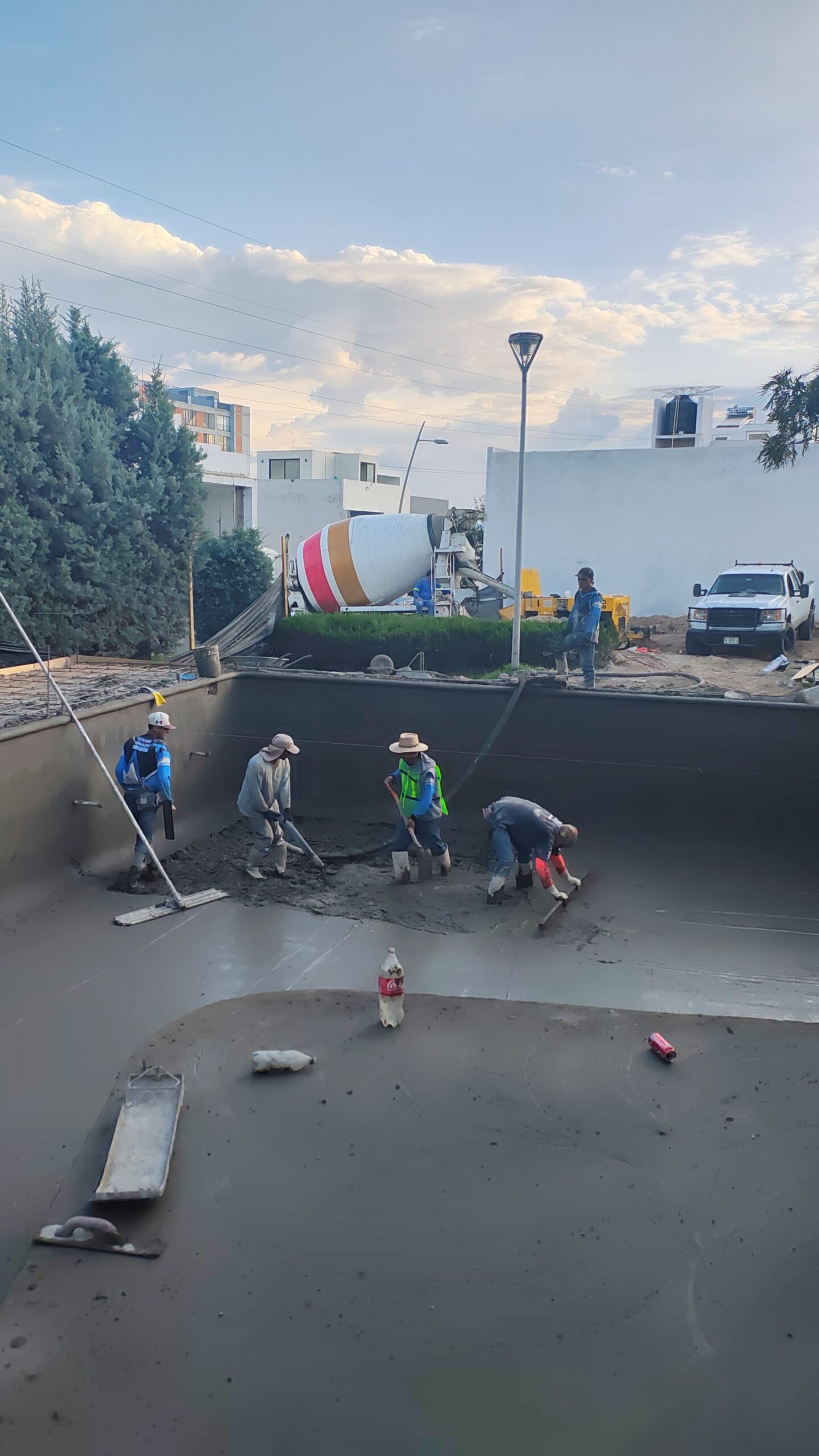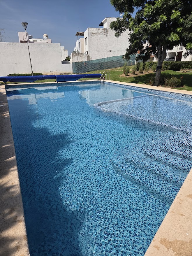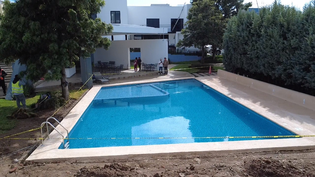 Construcción de alberca para casa club de fraccionamiento. Diseñada para que todas las familias puedan disfrutarla.