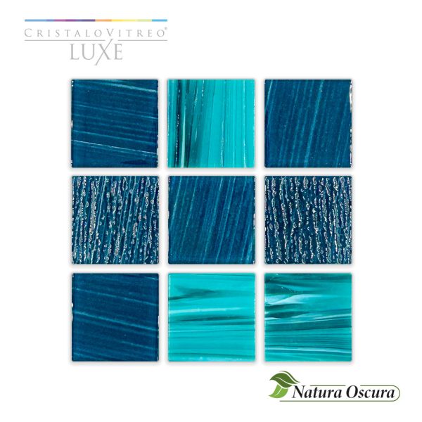 La mezcla Natura Oscura de Cristalo Vitreo LUXE combina tonos verdes intensos y texturas vibrantes que evocan la profundidad natural de espesos bosques y océanos. Cada pieza de 3.5 x 3.5 cm es un toque de elegancia y refinamiento, ideal para espacios que buscan un balance perfecto entre lo moderno y lo natural y crear un ambiente sofisticado y distintivo.